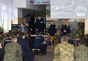Zawód POLICJANT - spotkanie z uczniami klas o profilu mundurowym w Liceum Ogólnokształcącym w Urlach