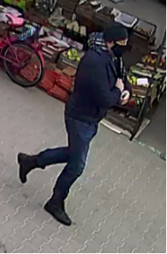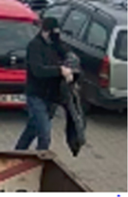 W toku prowadzonego postępowania zabezpieczono nagranie monitoringu z miejsca zdarzenia, na którym widoczny jest wizerunek osoby podejrzewanej o zaistniałe przestępstwo. Mężczyzna podejrzewany o kradzież ubrany był w ciemnogranatową kurtkę, spodnie jeansowe koloru niebieskiego, ciemne buty za kostkę, czarna czapka, ma twarzy miał założoną czarną maseczkę. Sprawca poruszał się pojazdem typu VAN w ciemnym kolorze z przyciemnianymi szybami wspólnie z inną n/n osobą.