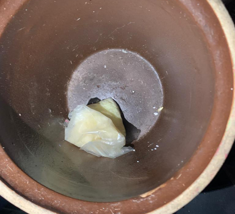 Kryminalni podjęli wówczas decyzję o sprawdzeniu pojazdów oraz obu kierowców. Zarówno w samochodach jak i przy legitymowanych osobach policjanci nie ujawnili żadnych przedmiotów, których posiadanie było by zabronione. Po wylegitymowaniu kierowca ciężarowej scani odjechał, kryminalni wraz z 27-latkiem udali się do domu, pod którym obaj mężczyźni się spotkali. W jednym z pomieszczeń mieszkalnych ujawnili torebkę z zapięciem strunowym z zawartością marihuany. Na tym czynności przeszukania nie zostały zakończone. Na strychu domu w glinianym garnku policjanci ujawnili foliowy woreczek z zawartością żółtej substancji, częściowo skrystalizowanej. Zapytany o jego posiadanie oświadczył, że jest to mefedron, który posiada na własny użytek. Uwagę kryminalnych zwróciła również waga elektroniczna i puste torebki foliowe z zapięciem strunowym.