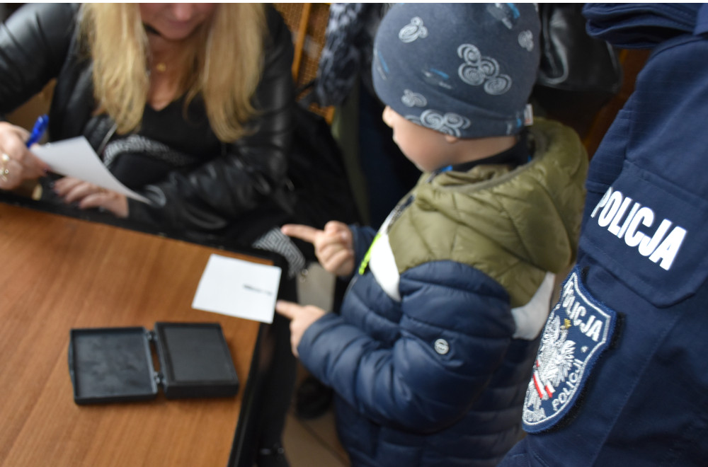 Przedszkolaki dowiedziały się, kto to jest policjant dyżurny i czym się zajmuje. Poznały czworonożnego funkcjonariusza, który służy w Komendzie Powiatowej Policji w Wołominie. Od policjantki profilaktyki mł. asp. Joanny Pieńczuk, która oprowadzała gości po terenie jednostki, usłyszały co to jest daktyloskopia. Później mali uczestnicy mogli samodzielnie zrobić odciski linii papilarnych. Dużą atrakcją było również zwiedzanie policyjnego aresztu.