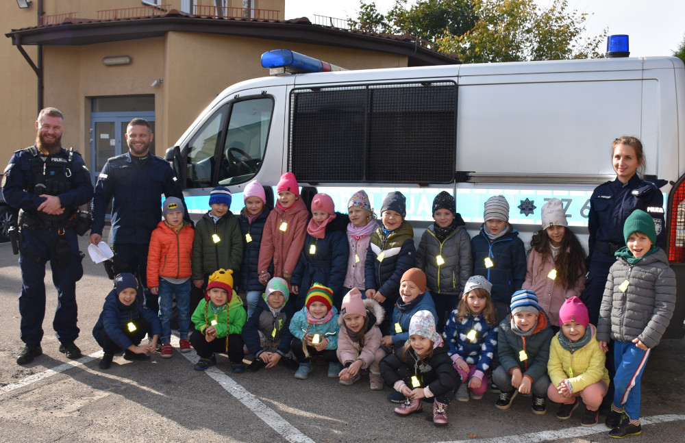 Oprócz zapoznawania się z tajnikami pracy w policji dzieci wysłuchały porad dotyczących bezpieczeństwa oraz sposobów unikania zagrożeń na drodze. Na zakończenie spotkania, każdy uczestntnik otrzymał odblaskowy upominek.