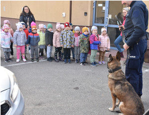Dzieci z przedszkoli chętnie odwiedzają naszą jednostkę. Podczas takich spotkań policjanci pokazują najmłodszym pojazdy policyjne oraz oprowadzają „małych gości” po komendzie. W trakcie zwiedzania policjanci opowiadają czym zajmują się na co dzień funkcjonariusze poszczególnych wydziałów i jak wygląda ich codzienna służba. Tak samo było w tym przypadku.
