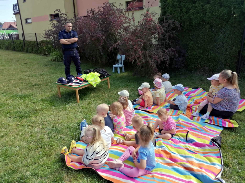 Dzieci miały okazję przymierzyć kamizelki odblaskowe i z bliska obejrzeć policyjny radiowóz. Wiele emocji wzbudziło włączanie sygnałów świetlnych, a także możliwość wejścia do środka radiowozu i poczucie się przez chwilę jak prawdziwy policjant. Dla najmłodszych była to nie tylko okazja do świetnej zabawy, ale także niezapomniane przeżycie, które na długo pozostanie w ich pamięci. Bezpośredni kontakt z policjantami budzi w dzieciach zaufanie i sympatie - nie brakowało przybijania „piątek”, braw i radosnych uśmiechów.