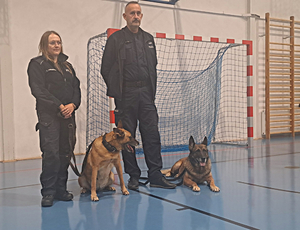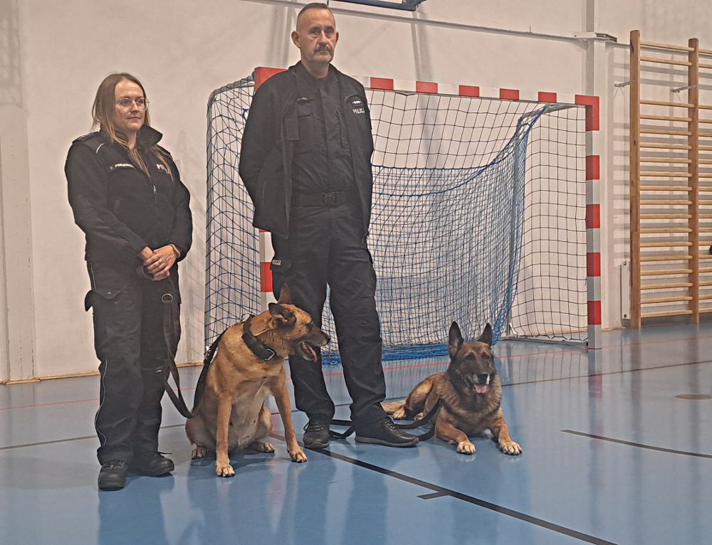 Z troski o dzieci, które mogą na swojej drodze spotkać agresywne zwierzę, spotkanie odbyło się z udziałem przewodnikiem psów służbowych. Dzięki temu uczniowie mogli poznać czworonożnych funkcjonariuszy - „Herę” i „Kastora”. Od opiekuna psów asp. sztab. Roberta Szydeł dowiedzieli się, jak należy się zachować w kontakcie z agresywnym psem. Funkcjonariusz opowiadał także, jakich zachowań psy nie lubią i czego nie robić, by ich nie prowokować, a także przedstawił specyfikę pracy policyjnych psów. Dzieci były bardzo podekscytowane wizytą tak niecodziennych gości w ich szkole i aktywnie włączały się w prowadzone zajęcia.