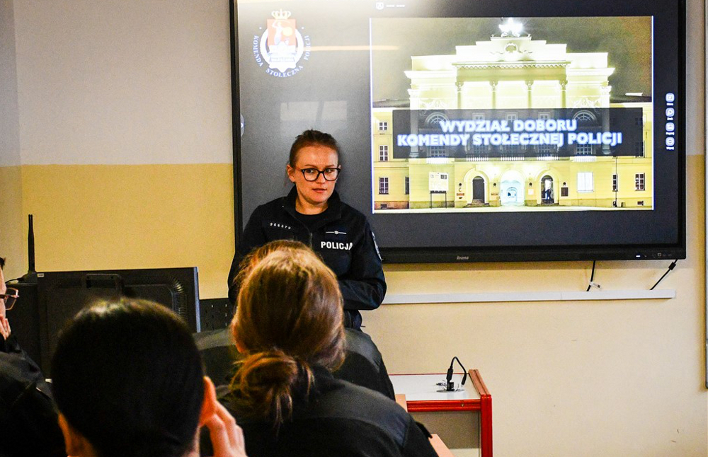 Podczas spotkania mł. asp. Olga Pinkiewicz szczegółowo przedstawiła proces rekrutacji, omówiła wymagania stawiane kandydatom oraz opowiedziała o obowiązującym teście sprawności fizycznej. Dla wielu młodych osób była to okazja poznania pracy poszczególnych komórek organizacyjnych Policji, w tym specyfikę służby oraz wyposażenie.