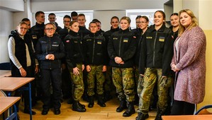 Spotkanie z uczniami klas mundurowych, zainteresowanych tematyką bezpieczeństwa publicznego i możliwością rozpoczęcia kariery zawodowej w Policji przeprowadziła funkcjonariuszka Komendy Powiatowej Policji w Wołominie.