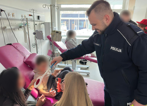 Dzielnicowy z Radzymina z sercem dla najmłodszych - wizyta w Centrum Zdrowia Dziecka