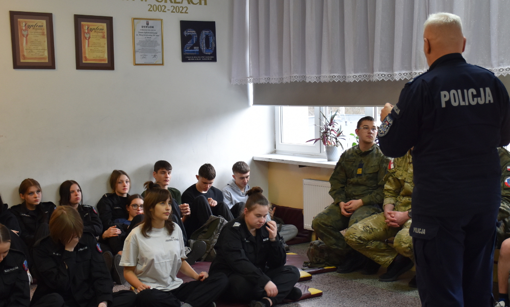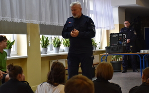 Zawód POLICJANT - spotkanie z uczniami klas o profilu mundurowym w Liceum Ogólnokształcącym w Urlach