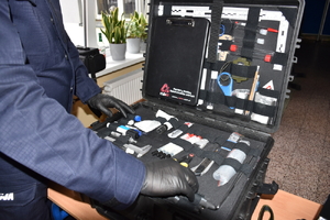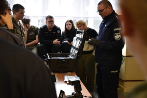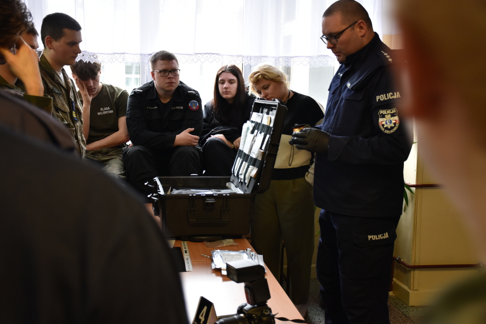 Dużym zainteresowaniem cieszyło się stoisko kryminalistyczne. Policjanci zaprezentowali specjalistyczny sprzęt wykorzystywany podczas oględzin miejsca zdarzenia. Uczniowie, pod okiem techników, uczyli się ujawniania i zabezpieczania śladów daktyloskopijnych oraz traseologicznych.