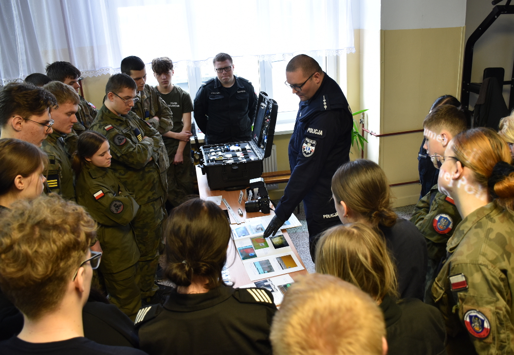 Uczniowie Szkole Mundurowej w Urlach mieli okazję poznać specyfikę codziennej służby funkcjonariuszy Policji. Zajęcia praktyczne, zorganizowane na terenie szkoły, pozwoliły młodzieży z bliska przyjrzeć się pracy policjantów różnych specjalności.