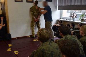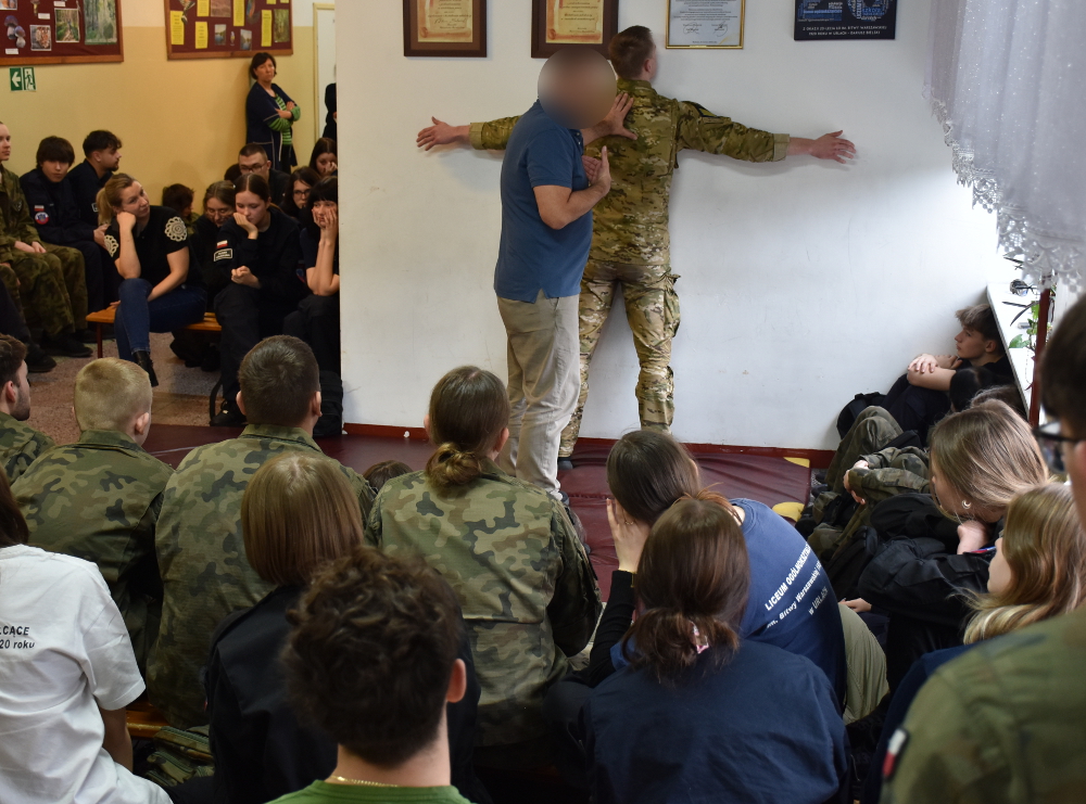 Podczas pokazu taktyk i technik interwencji młodzież mogła zobaczyć, jak prawidłowo przeprowadzić interwencję policyjną. Instruktor zaprezentował sposoby obezwładniania osób stwarzających zagrożenie oraz techniki zakładania kajdanek.