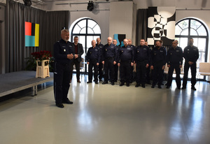 Podczas spotkania podkreślił wieloletnia historię święta oraz rolę kobiet w strukturach Policji, jak i istotny wkład w realizację codziennych zadań. Komendant zaznaczył profesjonalizm, odpowiedzialność i zaangażowanie, z jakim policjantki i pracownice cywilne wykonują swoje obowiązki. Wyraził także wdzięczność za ich pracę na rzecz bezpieczeństwa lokalnej społeczności. Życzył Paniom zdrowia, pomyślności, spełnienia planów oraz wielu sukcesów zarówno w życiu zawodowym, jak i prywatnym. Każda z Pań otrzymała czerwoną różę, stanowiącą symboliczny wyraz wdzięczności i uznania.