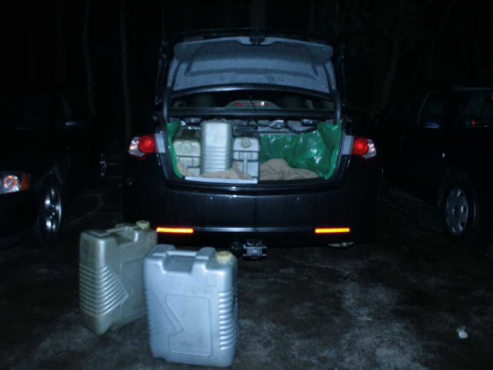 Funkcjonariusze z komisariatu w Tłuszczu kilka minut przed 23:00 udali się w rejon jednej z baz transportowych na terenie gminy Tłuszcz, gdzie według uzyskanej informacji jeden z kierowców zespołu pojazdów ciężarowego przewożącego paliwo miał nielegalnie spuszczać z cysterny benzynę.