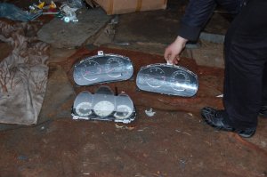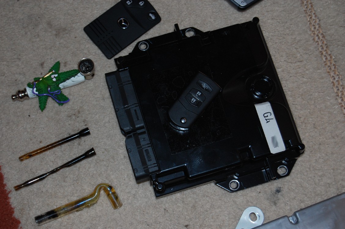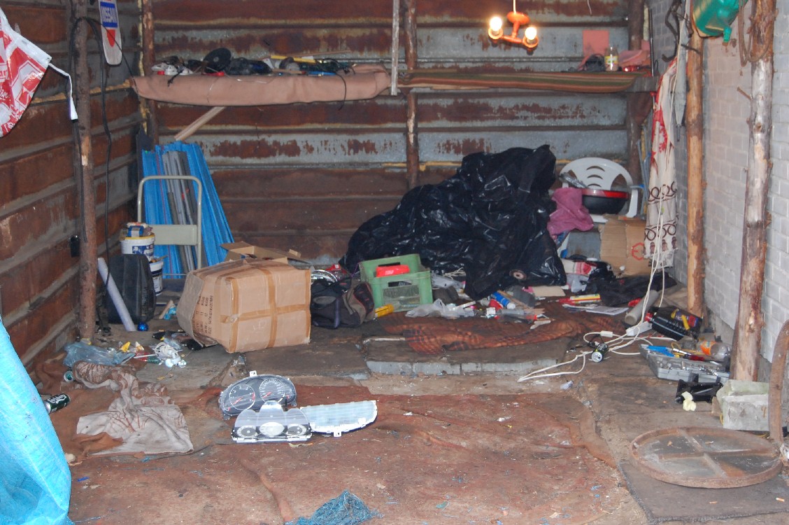 Tym razem kryminalni z Wołomina wpadli na trop „dziupli” zorganizowanej pod Radzyminem. Wszystko wskazywało na to, że to właśnie tam mogą być przechowywane i demontowane pojazdy kradzione w Wołominie i Warszawie. Funkcjonariusze postanowili sprawdzić zdobyte informacje. Kiedy wkroczyli do pomieszczeń gospodarczych na posesji, odkryli nadwozie mazdy z odciętą komorą silnika, elementy nadwozia, zawieszenia, lampy i liczniki samochodowe. W trakcie przeszukania pomieszczeń mieszkalnych policjanci znaleźli ponadto sterowniki do mazd służące do kradzieży pojazdów tej marki wraz z kluczykami, łamaki samochodowe, atrapę broni „Beretta”, nawigację samochodową , telefony komórkowe, torebkę foliową z suszem roślinnym oraz cztery szklane fifki do palenia suszu wraz z marihuaną w jednej z nich. Kryminalni zabezpieczyli również do badań mechanoskopijnych rovera 620.