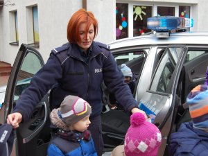 Policjanci dodatkowo rozmawiali i zadawali pytania dzieciom oraz ich opiekunom, nie tylko te dotyczące bezpieczeństwa w ruchu drogowym i w podróży, lecz również w domu i na podwórku. Kolejny już raz należy stwierdzić, że nawet najmłodsze dzieci i ich opiekunowie posiadają dużą wiedzę na temat naszego wspólnego bezpieczeństwa i pracy policjantów.