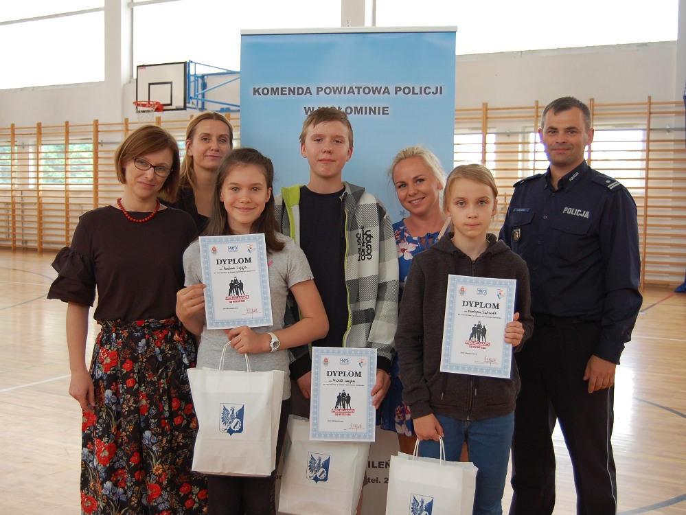 Nagrody ufundowane przez Urząd Miasta w Wołominie zwycięzcom oraz pamiątkowe dyplomy uczestnikom konkursu wręczył Komendant Powiatowego Policji w Wołominie podinspektor dr Marek Ujazda w asyście naczelnik Wydziału Prewencji KPP Wołomin nadkom. dr Mariusza Pawlaka oraz Sekretarz Miasta Wołomin Pani Małgorzata Izdebska.