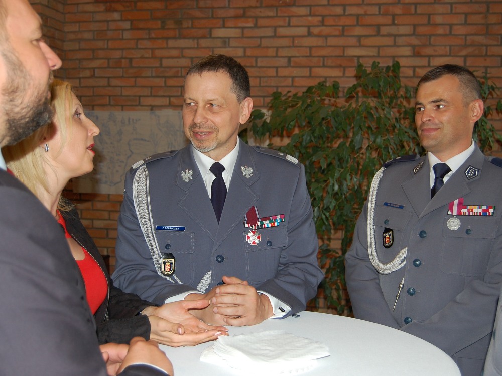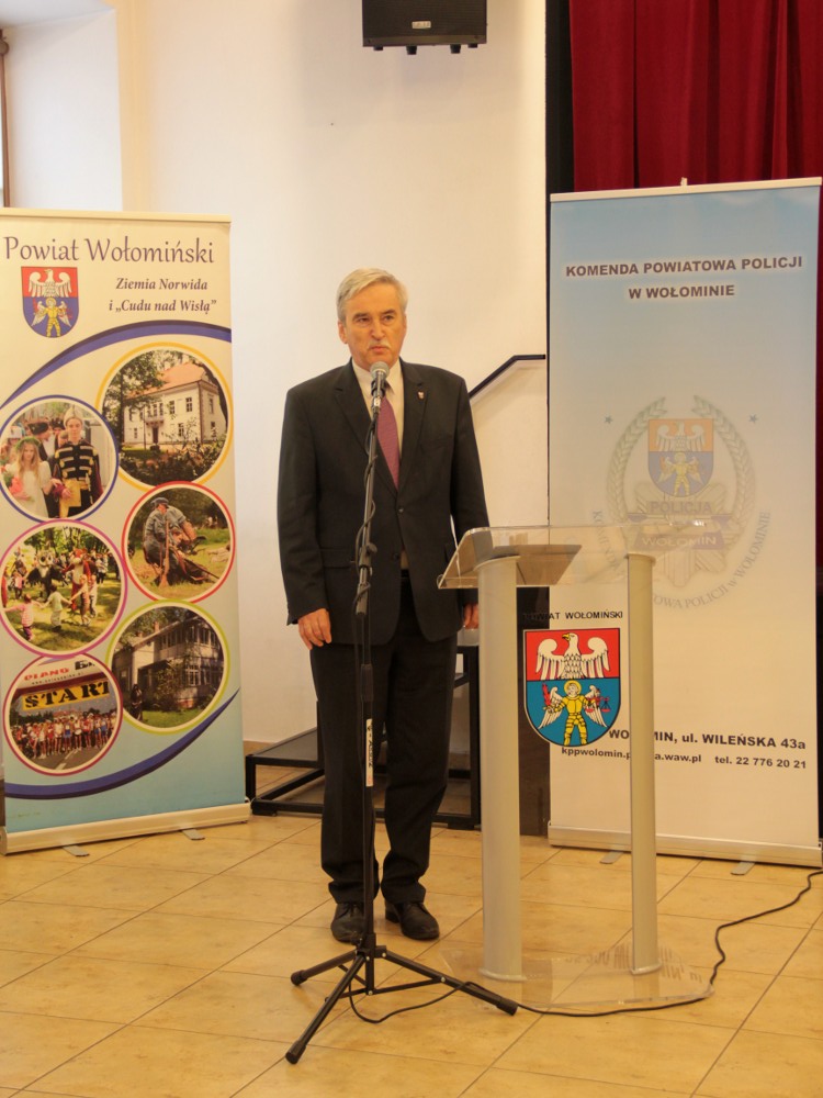 Kierownictwo, policjanci i pracownicy wołomińskiej Komendy usłyszeli też z ust V-ce Starosty Wołomińskiego Pana Adama Łossan wiele ciepłych słów, podziękowań i życzeń, nie zabrakło też okolicznościowych dyplomów i upominków.