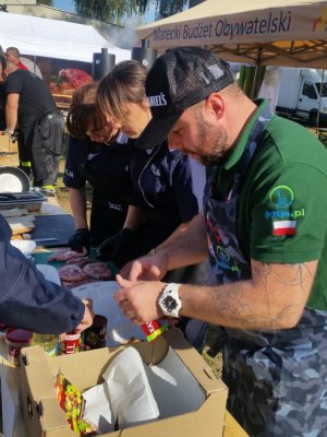 Mareckie Stowarzyszenie Gospodarcze oraz Jacek Orych Burmistrz Miasta Marki zorganizowali 30 września br. na terenie stadionu sportowego w Markach kolejną edycję „SPARTAKIADY RODZINNEJ – PODRÓŻ DOOKOŁA ŚWIATA”, w której uczestniczyli policjanci z komisariatu w Markach. Funkcjonariusze znakowali rowery oraz brali udział w specjalnej atrakcji kulinarnej - Mareckim Konkursie Mega Chef Grill & BBQ, opartym na zasadach telewizyjnych show kulinarnych! Trzy zespoły wspólnie z szefami kuchni rywalizowały w zawodach grillowania i wędzenia na specjalnych maszynach typu smoker. Puchar Burmistrza Miasta Marki za najwyżej ocenione i najsmaczniejsze danie konkursowe wywalczyła drużyna z komisariatu w Markach.
