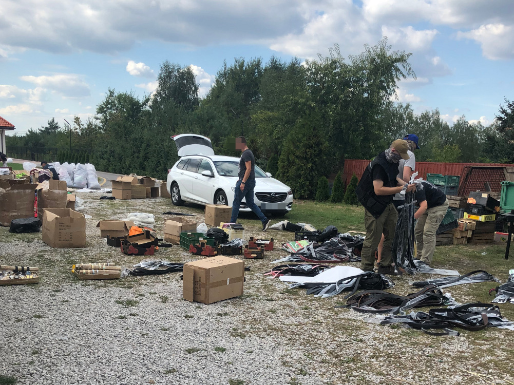 Wołomińscy policjanci z Wydziału do Walki z Przestępczością Gospodarczą i Korupcją wspólnie z funkcjonariuszami Mazowieckiego Urzędu Celno-Skarbowego ustalili miejsce przechowywania podrobionych perfum, kosmetyków, odzieży i zegarków oraz osobę zajmującą się tym procederem. Kilka dni temu funkcjonariusze udali się do podwarszawskiej Wólki Kosowskiej, gdzie skontrolowali pomieszczenia gospodarcze znajdujące się na prywatnej posesji. W budynkach garażowych ujawnili wyroby w postaci zegarków, odzieży, tekstyliów oraz obuwia w łącznej ilości blisko 11 tys. sztuk, gdzie wartość rynkowa zabezpieczonego mienia została oszacowana na kwotę 6,5 mln złotych. Na terenie posesji przebywał 40-letni obywatel Ukrainy, który został zatrzymany.