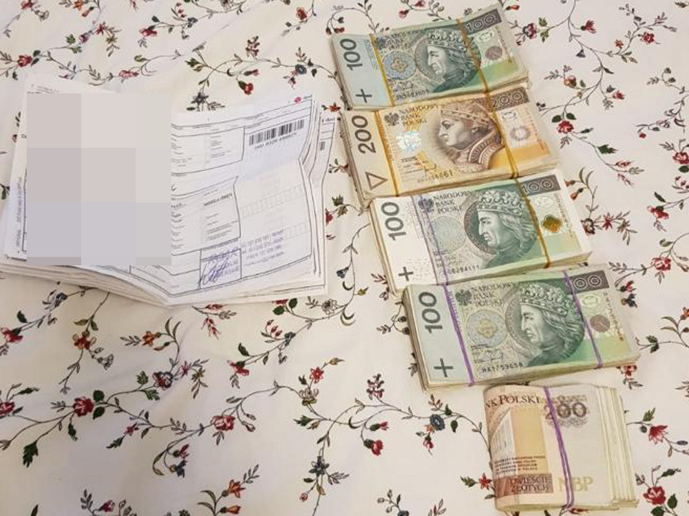 zabezpieczone przez funkcjonariuszy pieniądze -