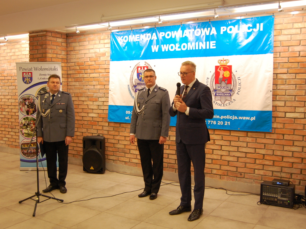 Nie zabrakło również życzeń, które osobiście przekazał zgromadzonym Starosta Wołomiński Pan Adam Lubiak oraz Przewodniczący NSSZ Pracowników Cywilnych KSP Pan Jan Gałązka.