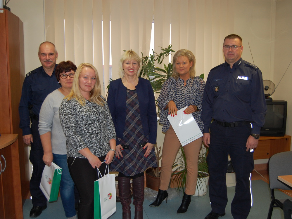 Dzień wcześniej Burmistrz Miasta Ząbki Pani Małgorzata Zyśk w budynku Komisariatu Policji w Ząbkach w obecności Z-cy Komendanta Powiatowego Policji w Wołominie nadkom. dr Mariusza Pawlaka i Komendanta KP Ząbki podinsp. Dariusza Korzenia wręczyła pracownikom cywilnym KP Ząbki nagrody za rzetelną pracę.