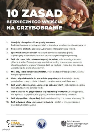 O tym, że Polacy kochają grzybobranie nie trzeba nikogo przekonywać. Ten sposób spędzania wolnego czasu polubili zwłaszcza seniorzy, którzy w lasach potrafią spędzać długie godziny. Bezpieczne grzybobranie kojarzy się przede wszystkim z wiedzą niezbędną do rozróżnienia gatunków grzybów. W tym przypadku bezpieczeństwo to jednak pojęcie szersze i jest ono związane również z profilaktyką zaginięć.