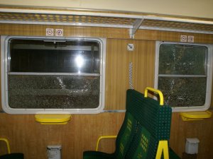 Ponad 50 szyb w przeciągu dwóch tygodni wybili w składach wagonów osobowych na trasie Małkinia – Warszawa Wileńska dwaj młodzi mężczyźni zatrzymani przez funkcjonariuszy z komisariatu w Jadowie. Jak ustalili policjanci 19-letni Przemysław L. i 20-letni Damian S. zniszczyli dodatkowo w wagonach osobowych blisko 20 świetlówek, powodując straty o łącznej wartości przekraczającej kwotę 7.500 złotych. Obaj już usłyszeli po cztery zarzuty dokonania przestępstwa zniszczenia mienia. Dobrowolnie poddali się też karze pozbawienia wolności w warunkowym zawieszeniu, grzywnie i naprawieniu wyrządzonej szkody.